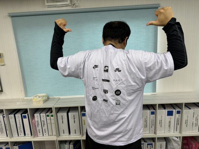 迎田君には社長からは、ナイキのセーター